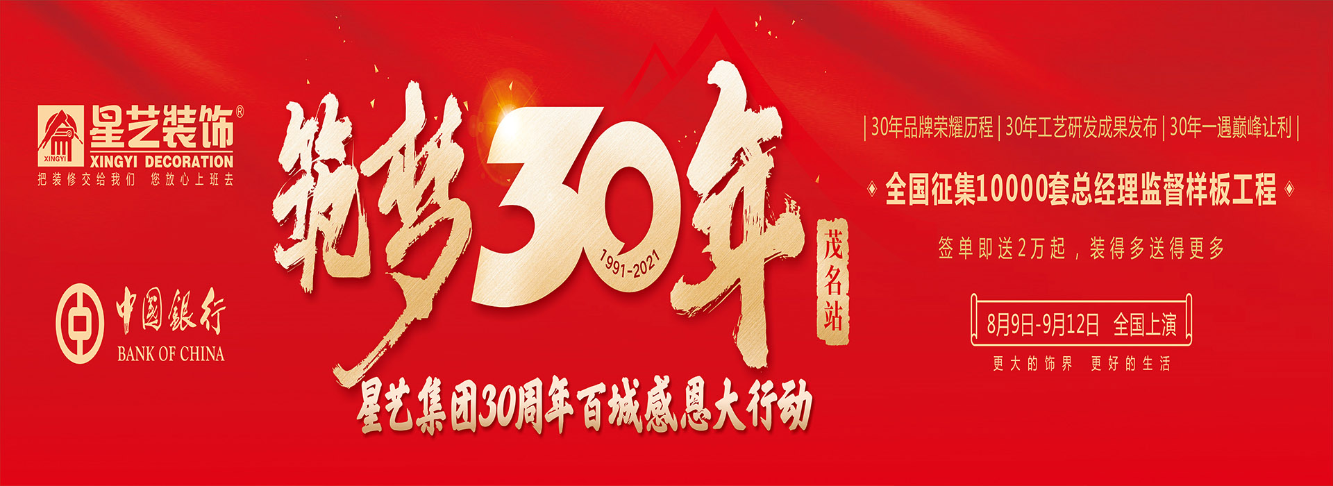 茂名星藝裝飾有限公司是具有強大專業實力的大型裝飾裝修設計、施工企業和旗艦品牌。2003年7月1日,廣東星藝裝飾集團進駐茂名, 成立星藝裝飾茂名分公司,為了順應公司業務發展的需要, 2010年3月成立了高州分公司,2011年5月成立了化州分公司, 2019年5月成立了信宜分公司。十幾年來茂名星藝人不改初心,堅守信念和承諾秉承星藝文化理念,把星藝打造成"中國影響力廣、規模大、實力強、技術和服務好的裝飾公司”為目標。